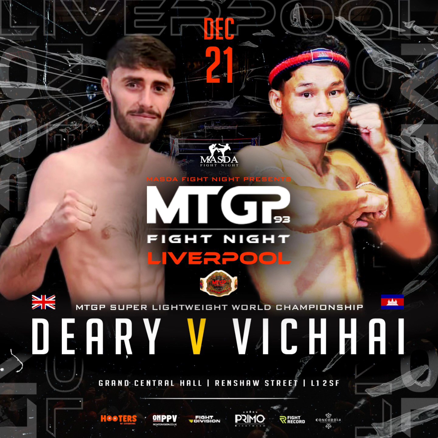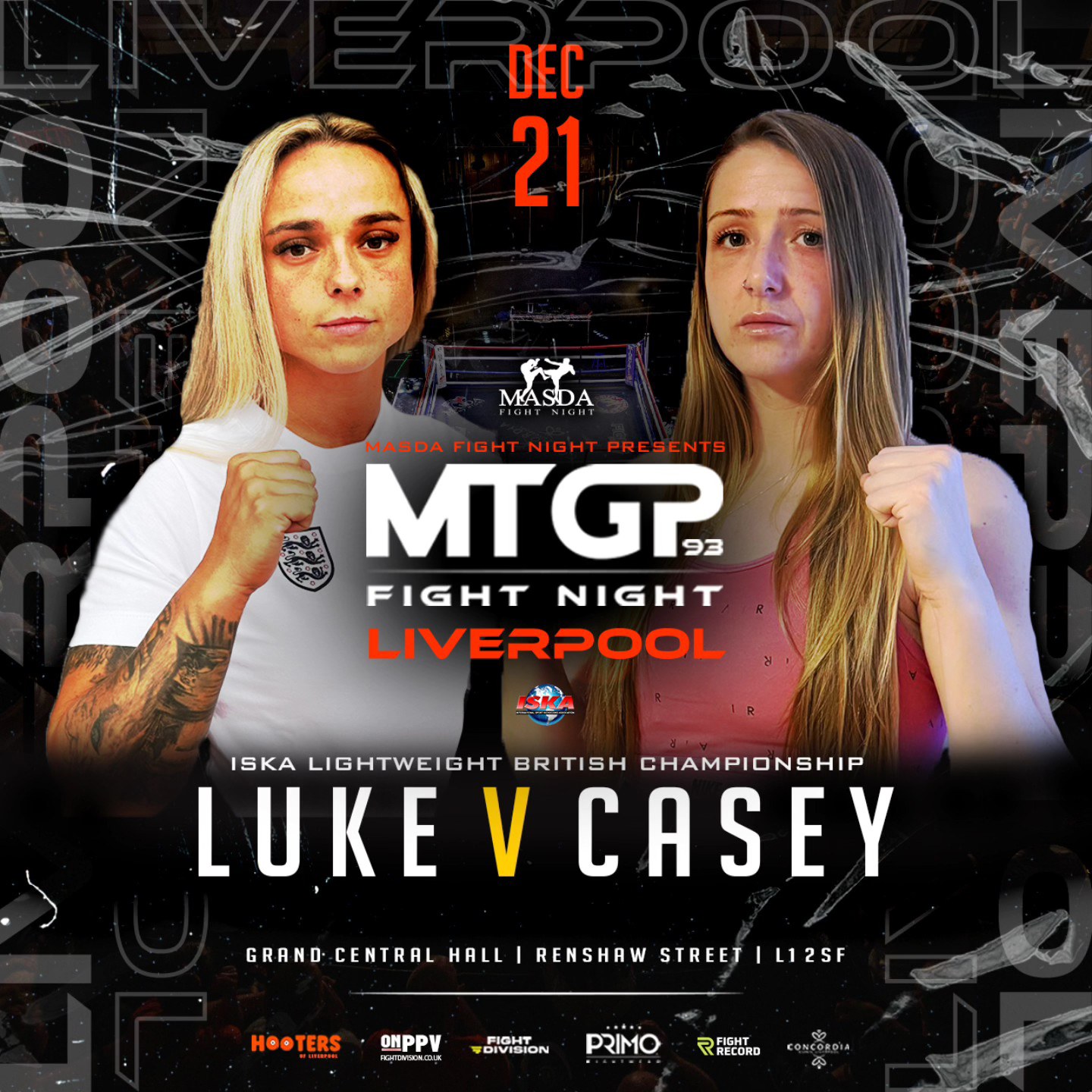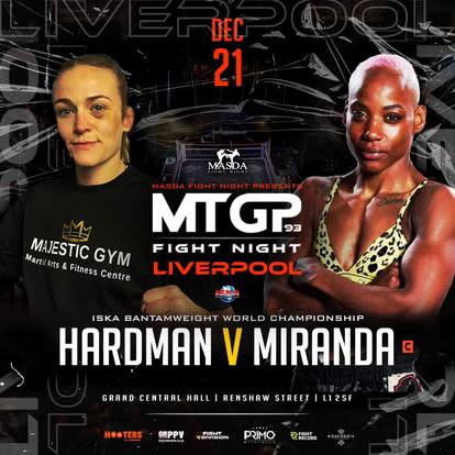 MASDA Fight Night will present MTGP 93 Liverpool featuring ISKA World Championship Muay Thai, Saturday 21st December 2024 at Grand Central Hall, Liverpool UK. ISKA World Champion Daniela Miranda (England) will defend her ISKA Women’s World Super-flyweight title 53.5kg MT against Leonie Hardman (England). ISKA two division World Champion Anthony Deary (England) will face Som Vichhai (Cambodia) for the MTGP World Super-Lightweight title 63.5kg. The card will also include ISKA British, English and Area title fights.